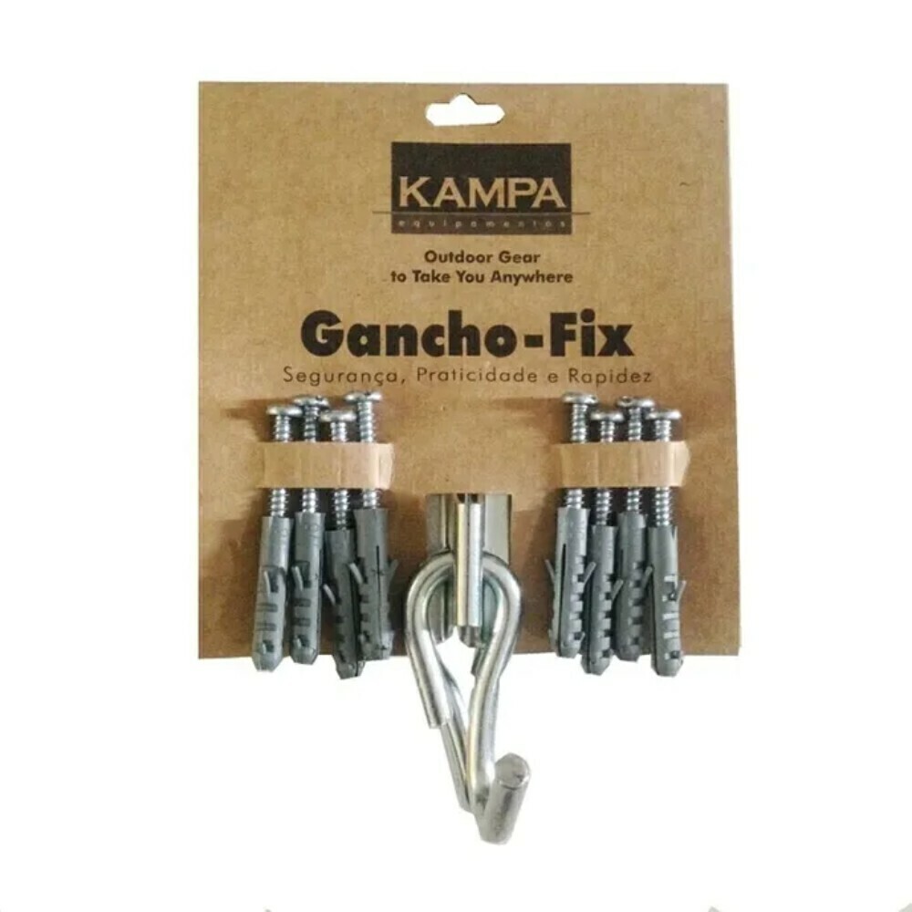 Gancho Kampa Fix para Redes fornece fixação segura e resistente para suas redes de descanso. Feito em aço galvanizado, suporta altas cargas e é ideal para quem busca durabilidade sem complicações na instalação, garantindo conforto em varanda, sacada ou campings.